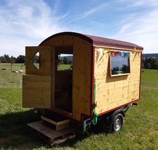 Nous louons également une magnifique roulotte de berger pour 2 à 3 personnes. Elle se trouve derrière le jardin vers le foyer, et peut être déplacée.